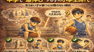 ― 今うまい子が勝つとは限らない理由 ―ミニバスで目立っていた子が、中学で伸び悩む。逆に、目立たなかった子が、中学で一気に伸びる。これは珍しい話ではありません。なぜか?小学生は“早熟”が有利小学生年代は、✔ 身体の成長スピード✔ 経験年数✔...