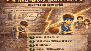 「正直、才能はあまりないかもしれませんね」コーチからそう言われた日。一番ショックを受けているのは、実は“親”かもしれません。でも――その日の“親の反応”が、子どもの未来を大きく左右します。今回は、「才能がない」と言われたあと伸びる子の家庭が...